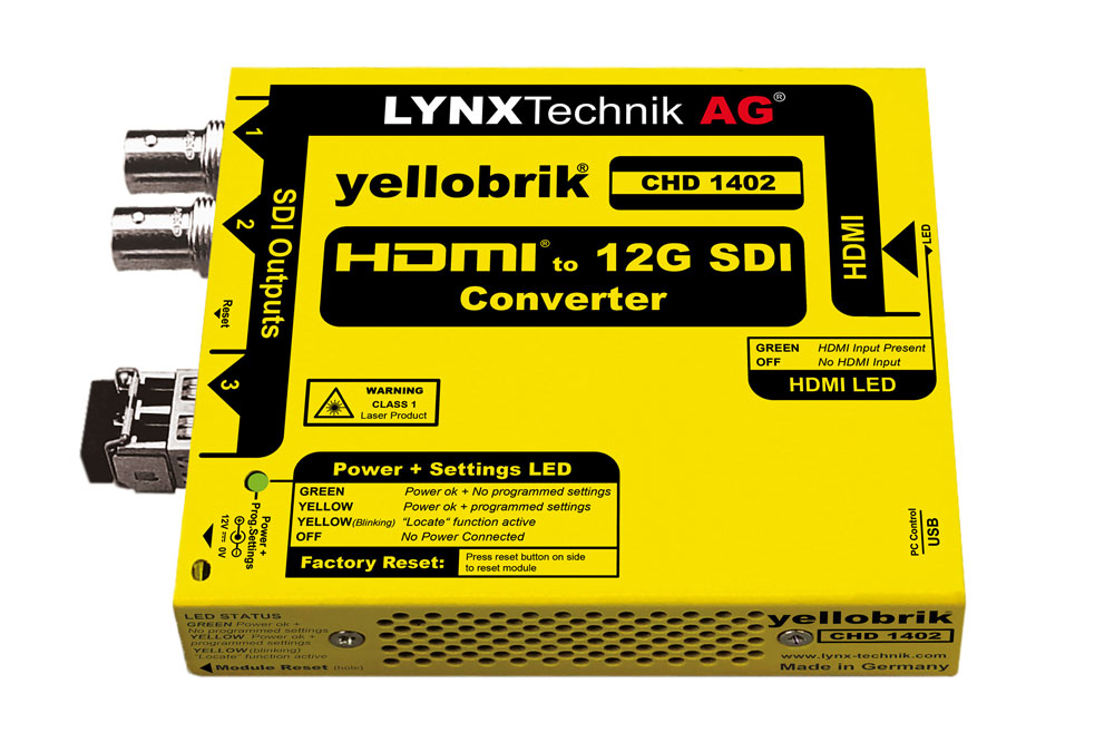 The CHD 1402 is a compact HDMI to SDI converter. It is an ideal solution for any application which requires a broadcast quality SDI signal derived from an external HDMI source. Currently only PCM audio present in the HDMI stream will be embedded into the corresponding channels on the SDI output.