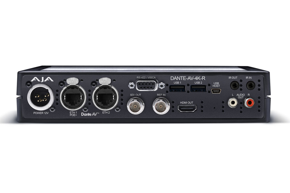 AJA Dante AV 4K-T and Dante AV 4K-R utilize the new Dante AV Ultra solution that enables networked video to be used alongside the industry leading Dante audio-over-IP platform on standard 1 GigE IP networks.