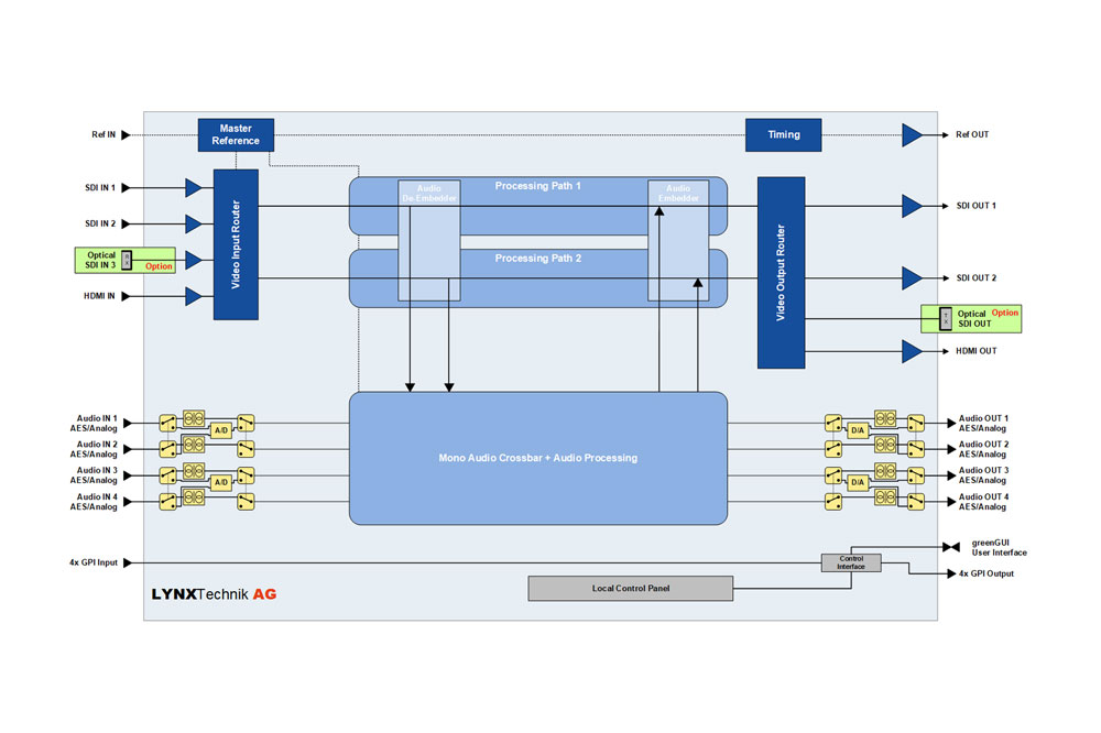 • 2x electrical SD/HD/3G SDI inputs. Level A and Level B DL