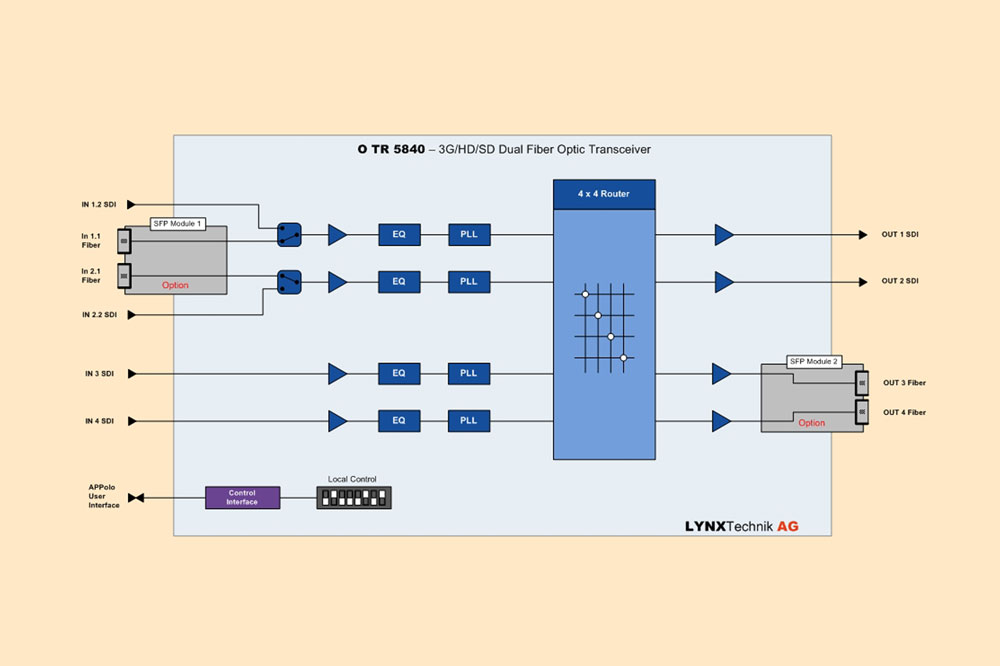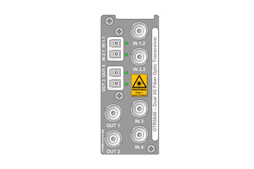 The OTR 5840 is a flexible dual channel SDI electrical to optical transceiver suitable for SDI/ASI-DVB video signals up to 3Gbit/s. Each channel has automatic input clock rate and signal presence detection with selectable signal reclocking. This module is ideally suited for demanding digital multi-format broadcast and professional applications.