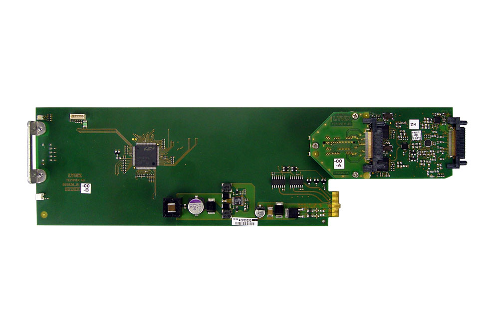 Two input channels can be switched between optical or electrical inputs. In non-reclocked mode the module will transparently pass any data between 15Mbit/s and 3Gbit/s. Support for ASI/DVB and SMPTE 310 signals is also provided.
