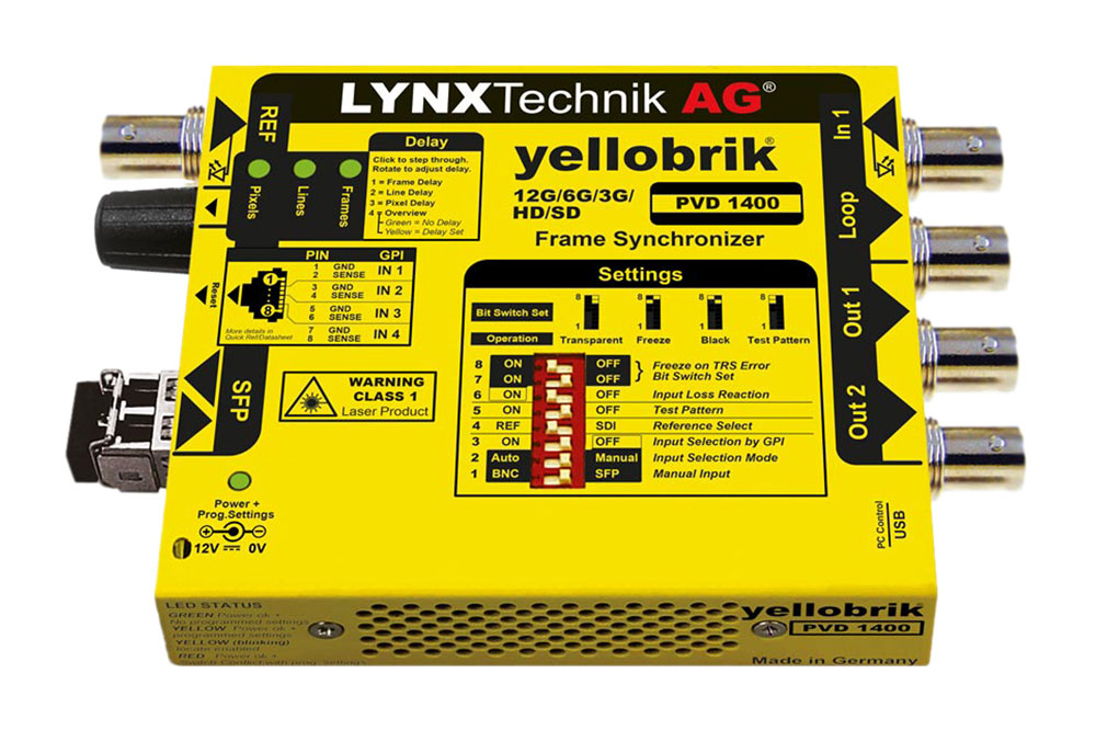 The PVD 1400 is a broadcast quality compact 12G-SDI frame synchronizer for professional applications in the Broadcast and Post Production industry. It can buffer up to 30 frames and generate Test patterns.