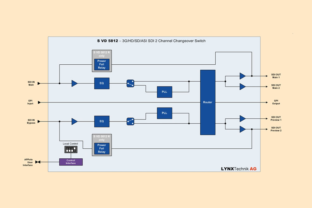 The SVD 5812 is a 2 channel changeover switch which can be automatically triggered when an input fails or manually triggered. Fully compatible with SDI / DVB-ASI and SMPTE 310 signals up to 3Gbits/s. This module is ideally suited for demanding multi-format broadcast and professional video applications.
